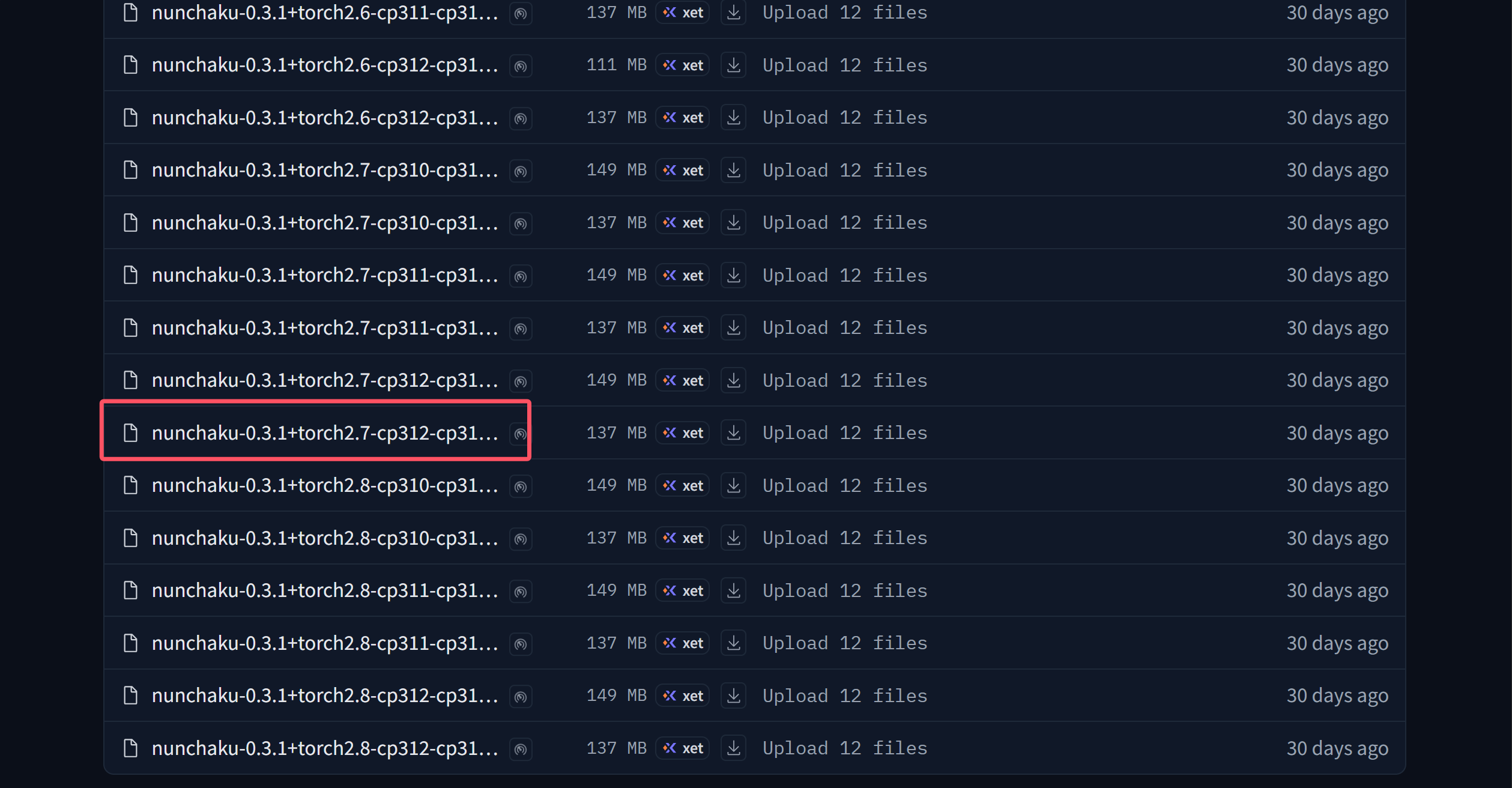 找到最新的 Nunchaku (当前最新0.3.1)我是 pytorch version: 2.7.1+cu128 所以查找 torch2.7 版本的